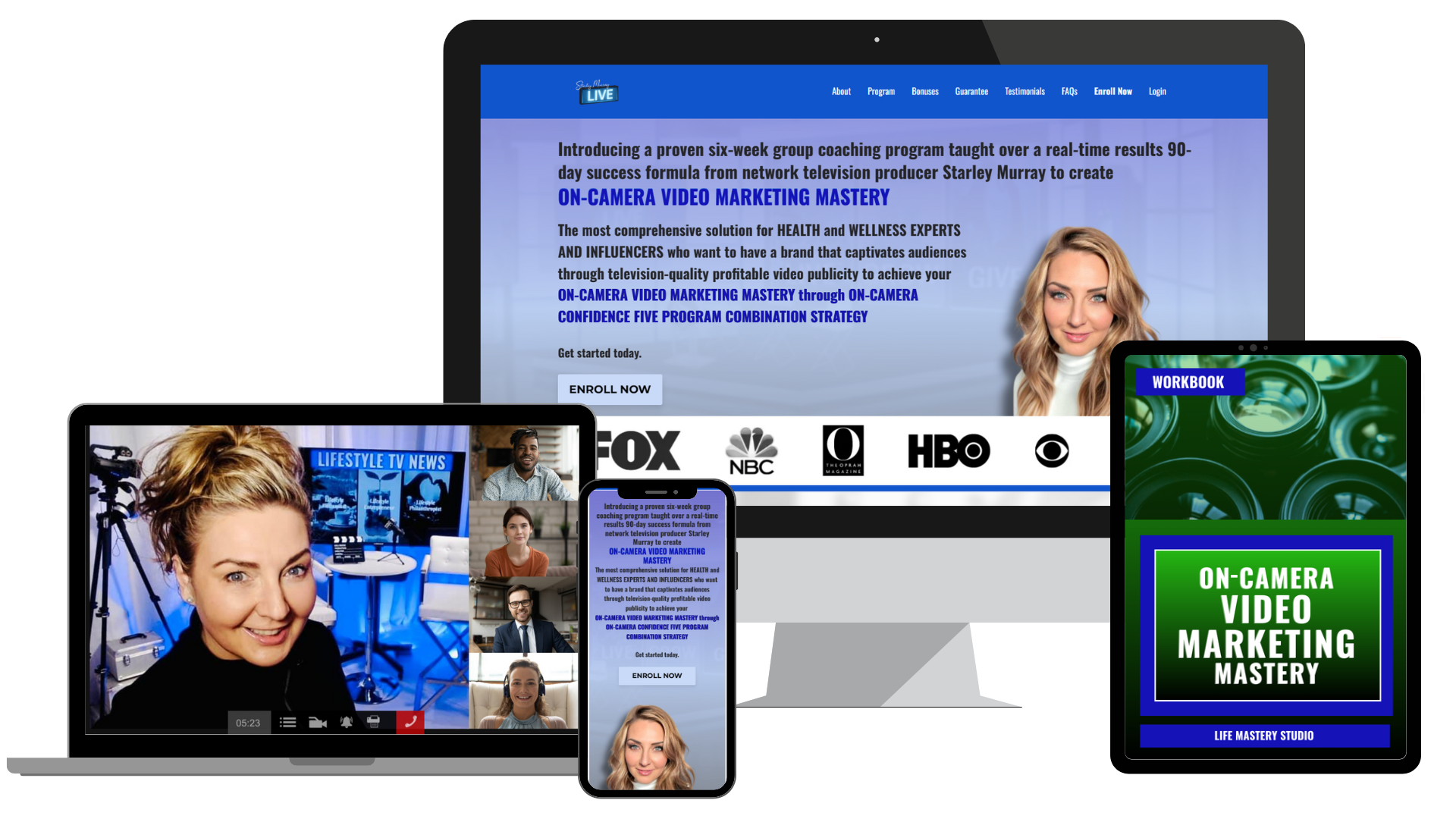 Introducing a proven program taught over a real-time results 90-day success formula from network television producer Starley Murray to create On-Camera Video Marketing Mastery